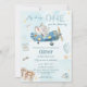 Personnalisez cette mignonne invitation de 1er anniversaire avec votre propre libellé facilement et rapidement. Cliquez simplement sur le bouton Modifier à l'aide des outils de conception pour modifier davantage le texte, le libellé, le style de police, la taille de police, la couleur de police, ajouter du texte, déplacer ou supprimer des images. Doté d'un joli petit éléphant à bord d'un avion bleu et d'un "My, oh my... Un an passe !" titre. Objets correspondants disponibles en magasin. c) Somerset Fine Paperie.