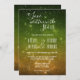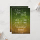 Les invitations à un mariage céleste comportent une typographie de script disant, A Love Written in the Stars, avec ciel de nuit vert et or avec des étoiles scintillantes Faire-part de mariage.