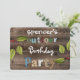 Une amusante invitation à l'anniversaire rustique avec une clôture en bois et un feuillage. Ajoutez un nom à l'avant. L'arrière est une illustration amusante d'un cadre extérieur avec des infos sur la fête.