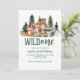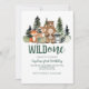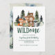 Un sauvage ! Anniversaire des animaux des bois avec ours, renard, cerf, raton laveur et arbres à grains de bois.