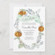 Cette petite invitation de baby shower citrouille, neutre pour les deux sexes, encadre vos détails d'évènement avec de charmants citrouilles dans les tons oranges avec une verdure d'aquarelle peinte luxuriante. Un linge de lit vert sauge tendance orne le dos de l'invitation. Choix de poussins boho pour les baby showers d'automne et d'automne. Conçu par Victoria. Pour en savoir plus, visitez www.zazzle.com/vginvites
