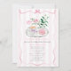 Coquette baby shower girly avec illustration d'un plateau avec fleurs, teacup et macaron rose. L'invitation comporte une bordure d'arc en ruban rose et un arrière - plan en bande rose.