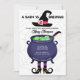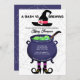 Un bébé brasse Baby shower d'Halloween Invitation avec sorcières casquette, chaudron, pieds sorciers et araignées web. Des invitations amusantes à la douche bébé automne.