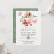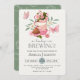Un bébé est en train de brasser l'invitation de baby shower de thé.Ce baby shower neutre de genre comprend des tasses avec des fleurs roses rousses et des papillons avec un gâteau à la tasse en papier arrière - plan, le côté arrière de la carte est vert sauge avec des tasses en lineart.Un thème de thé baby shower rustique neutre de genre parfait.