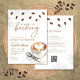 Cette invitation de baby shower élégante présente des grains de café et une tasse de café et peut être personnalisée avec toutes vos informations de célébration spéciales, avec votre code QR de registre et les détails de l'événement au verso. Conçu par Thisisnotme©