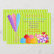 Commencez votre célébration par cette invitation adorable et colorée. C'est parfait pour cette fille douce dans votre vie ! il n'importe pas si elle tourne 3 ou 13 ceci est un grand thème. Cet invitation est placé sur un arrière - plan barré lumineux de vert de chaux. Il a 3 sucres candis ensemble dans un groupe : pourpre, rose et bleu. Il y a alors un groupe de différentes boules de gomme colorées de bleu au rouge à l'orange. À côté de elles sont 3 sucreries colorées en emballages. L'information sur cet invitation est dans quatre couleurs différentes lumineuses et audacieuses comme les sucreries. Vérifiez les nombreux autres produits et couleurs dans cette ligne. illustrations de ©JW