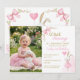 Célébrez le premier anniversaire de votre petite fille avec cette invitation photo personnalisée « Some Bunny Is Turning One ». Avec un lapin aquarelle dans une robe rose blush, des accents floraux doux, un nœud délicat et un espace pour votre photo préférée, ce design sucré est parfait pour une fête d'anniversaire élégante et charmante sur le thème du lapin.