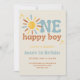Éclairer la journée spéciale de votre petit avec notre invitation de 1er anniversaire sur le thème du soleil "Un Garçon Heureux" ! Cette invitation adorable et vibrante est parfaite pour célébrer avec style le premier jalon de votre bébé garçon. Conçue avec des teintes jaunes joyeuses, des soleils ludiques et des détails charmants, elle est sûre de donner le ton à une célébration joyeuse que vos amis et votre famille chériront.
