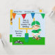 Préparez-vous à la journée de jeu ! Ces invitations colorées customisées à l'anniversaire du football sont idéales pour les garçons qui aiment le football ou qui font la fête d'anniversaire du football! On y trouve des drapeaux, un terrain de football, des chaussures de football, et un garçon dans un casque de football vert et un maillot tenant un football! Facile à customiser avec les détails de la fête d'anniversaire de votre enfant!