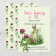 Un lapin a UN an, Invitation pour le 1er anniversaire avec un petit lapin et des trèfles. Un collage joyeux de peintures à l'aquarelle pour le petit qui célèbre son premier anniversaire.