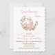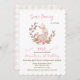 Un lapin fait une invitation à la fête d'anniversaire. Jolie typographie en rose pastel avec fontes marron doré. Adorable lapin d'aquarelle entouré de fleurs sauvages rose et marron. Retour de la carte d'anniversaire L'invitation est en pastel en vichy rose et beige aquarelle. Personnalisez facilement vos invitations spéciales 1er anniversaire fille de fête.