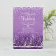 Mariage d'hiver pins violets et blancs dans la neige par la gouache du lac et invitations à l'art de l'aquarelle. Personnalisez avec vos propres détails mariages. Idéal pour un mariage de Noël ou un mariage d'hiver au bord du lac. Le titre dit : C'est un mariage d'hiver. © Gouache et aquarelle peinture et design par Sarah Trett www.sarahtrett.com pour www.mylittleedenweddings.com