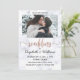 Invitation tout le monde à votre merveilleux mariage avec cette carte simple et élégante. Sélectionnez l'une des plus belles photos de vous ensemble. Le mot "mariage" est dans un style manuscrit/calligraphique rempli d'effets de parties scintillant rose en or.