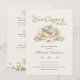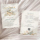 L'invitation de baby shower "tout en un" avec un thème de livre de contes bleu pour garçon, comprenant une demande de livres pour bébé, les détails du tirage au sort de couches et les informations de registre sur la même carte, crée une façon magnifiquement coordonnée et pratique de partager chaque détail essentiel pour une célébration de bébé garçon. Cette invitation de baby shower "Un nouveau chapitre commence" présente une typographie bleue poussiéreuse douce associée à une verdure délicate à l'aquarelle, des fleurs aériennes et une pile charmante de livres vintage surmontée d'un adorable accent de bébé, capturant un thème littéraire intemporel parfait pour une baby shower sur le thème des livres pour garçon. L'élégant mélange de polices serif classiques et de polices script fluides améliore l'esthétique raffinée inspirée des livres de contes tout en maintenant une mise en page propre et accueillante. Le verso coordonné inclut de manière transparente le poème "Livres pour bébé", les instructions pour le tirage au sort de couches et les informations de registre avec une zone de code QR, le tout stylisé avec des accents botaniques bleus assortis pour une conception cohérente de l'avant et de l'arrière. Les bordures de verdure subtiles et les tons bleus doux créent un look sophistiqué mais chaleureux idéal pour les thèmes de baby shower champêtre, rustique, jardin ou classique pour garçon. En combinant l'invitation, l'encart de demande de livre,