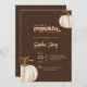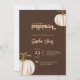 Donnez le ton d'une célébration cosy et élégante avec cette petite invitation baby shower citrouille en brun foncé. Idéal pour un événement sur le thème des chutes, ce design est composé d'un riche arrière - plan marron avec un citrouille d'aquarelle charmant, un feuillage d'automne et des accents saisonniers chauds. Que vous soyez l'hôte d'un rassemblement intime ou d'une célébration plus large, cette invitation offre des champs de texte personnalisables pour s'adapter parfaitement aux détails de votre événement. Idéal pour les amateurs d'esthétique rustique, terreuse et d'inspiration automnale, cette invitation au baby shower citrouille marron foncé ajoute une touche de sophistication à votre journée spéciale.
