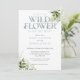 Une petite invitation au baby shower fleur sauvage avec une élégante typographie bleue poussiéreuse et un joli feuillage botanique. Conçu par Thisisnotme©