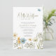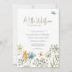 Moderne aquarelle fleurie "un petit fleur sauvage est sur le chemin" boho chic genre neutre élégant simple blanc baby shower d'invitation modèle avec la nature fleurs sauvages en bordure de fleur et des papillons.