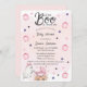 Célébrez l'arrivée prochaine de votre petit avec cette invitation baby shower charmante et fantasque "Un petit livre est presque dû". Ce design est composé d'une illustration douce, sur le thème du fantôme, parfaite pour un baby shower d'automne ou d'Halloween. L'invitation est décorée de citrouilles roses douces, d'étoiles violettes et bleues, d'un adorable fantôme poussant un chariot de bébé, le tout dressé contre un arrière - plan d'aquarelle rose doux. La police de caractères joueuse mais élégante ajoute une touche de sophistication, ce qui la rend parfaite pour une fête festive et sincère.