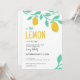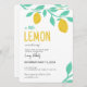 Invitation baby shower citron | Invitation au baby shower de fruits | baby shower Citrus — Invitation de baby shower numérique modifiable avec une palette de couleurs jaune vif, bleu turquoise et blanc avec des citrons et des feuilles vibrants. Lit : "Un peu de citron est en route !" Parfait pour les baby showers de jardin, les baby showers d'été et les baby showers à thème citron.
