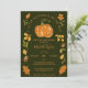 Un petit Citrouille blanc Automne Automne Baby shower floral pour la saison d'automne, baby shower neutre genre invitation à la mère d'être, avec l'aquarelle citrouille et vert avec des détails dorés