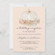 Un petit citrouille est en route ! Cette mignonne invitation au baby shower d'automne présente un citrouille d'aquarelle et un feuillage sur un arrière - plan beige pâle. Facile à personnaliser. Aquarelle originale © Michele Davies.
