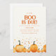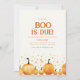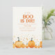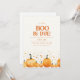 Préparez-vous à un baby shower envoûtant avec cette charmante invitation à thème Halloween ! La modèle est agrémentée d'une adorable rangée de citrouilles ornés de minuscules coutouts en forme de coeur en bas, apportant une touche de douceur à l'amusement éffrayant. Au centre, la phrase attachante "A Little Boo is Due" donne un ton ludique, tandis que les détails de la fête sont soigneusement arrangés ci-dessous. Cette invitation fantaisiste combine l'esprit d'Halloween avec une pointe d'anticipation réconfortante, ce qui en fait la meilleure façon pour les proches invitations de célébrer l'arrivée prochaine de votre petit !