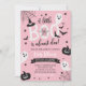 Un petit livre est presque attendu ! Invités Invitations à votre baby shower avec ce mignon fantôme rose et citrouille invitation baby shower Halloween.