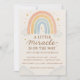 Célébrez votre moment spécial avec cette adorable invitation de révélation du sexe pastel arc-en-ciel avec la phrase « Un petit miracle est en route ». Conçue dans des tons d'aquarelle douce avec des accents rose, bleu, pêche et or, cette invitation apporte une touche douce, moderne et fantaisiste à votre célébration.