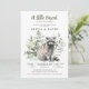 Un peu rascal sur le chemin, adorable et mignonne invitation baby shower d'aquarelle de bébé raccoon en bois. Un style neutre pour votre invitation qui honore à la fois maman et papa. Scène boisée rustique. Personnaliser pour les deux parents, ou maman seulement. Disponible en version imprimée, en téléchargement numérique ou les deux !