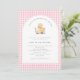 Un peu de canard est sur le chemin Baby shower canard Invitation - avec un petit canard bébé assis sur la verdure et les fleurs. L'invitation est entourée d'adorables en vichy rose vif à la typographie moderne pour une atmosphère minimaliste. L'invitation fait partie d'une collection de Baby showers.