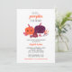 Un petit citrouille est sur le chemin de l'invitation baby shower, avec une jolie famille citrouille. Conçu et illustré avec amour par Kristine Lee www.kristineleedesigns.com