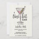 Levez votre verre et célébrez avec un peu de style ! Cette invitation d'anniversaire sur le thème du martini apporte une touche fraîche avec un cocktail dessiné à la main sur un fond rayé vert pâle.