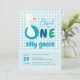 Invitation Un sot Goose Blue Plaid Boy 1er fête d'anniversair