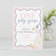 Une oie idiote ! premier anniversaire avec de l'oie, du plaid rose et du ruban.