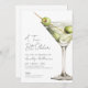 Levez un verre pour atteindre 21 ans, ou n'importe quelle étape, avec cette invitation chic à la fête à thème martini. En haut, l'expression "A Tini Bit Older" est écrite en écriture manuscrite stylisée, ajoutant une touche amusante au design moderne. Un verre à martini vert aquarelle aux olives se trouve sur le côté droit, donnant à la disposition une ambiance fraîche et adulte. Le format vertical garde les choses propres et minimes, avec des informations de fête présentées dans un mélange éclatant de polices serif et script. Idéal pour une soirée cocktail, une fête à la maison ou un rassemblement dans votre bar ou salon favori, cette invitation est entièrement modifiable. Modifiez le libellé, les couleurs et les polices pour qu'elles correspondent à votre image. Disponible sous forme de carte imprimée ou de fichier numérique pour envoyer un courriel ou imprimer n'importe où.