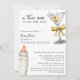 Une Tini arrive, Baby Shower Invitation avec QR Code - Une simple invitation de baby shower à l'aquarelle pour une fête prénatale genre neutre. Caractéristiques calligraphie script et police de caractères bloc élégant. Une illustration à l'aquarelle d'un martini sale avec deux olives et un ruban jaune doré coquette orne le coin supérieur droit tandis qu'une illustration à l'aquarelle d'un biberon orne le coin inférieur droit. Modifiez ce modèle d'invitation de baby shower avec vos propres détails d'événement. Facilitez l'accès à votre liste de naissance à vos invités en ajoutant l'adresse de votre liste de naissance au modèle de QR Code au dos de l'invitation. Tout le texte est modifiable. Également disponible en téléchargement numérique instantané, un moyen écologique d'envoyer des invitations par SMS, e-mail ou réseaux sociaux.