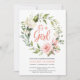 Courbe à fleurs vertes et rousses c'est une invitation baby shower fille, Contactez-moi pour les articles correspondants ou pour la personnalisation, Roses blush ©