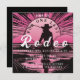 Un Dernier Rodeo Bachelorette, ce design présente une cowgirl dans un look rétro rose et noir coucher de soleil. Idéal pour toute soirée de bachelorette.