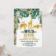 Ă?re invitation lunatique d'anniversaire comportant un groupe d'animaux mignons de safari dans l'or de faux et le feuille tropical magnifique