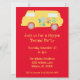 Une fête hippy cool, cette invitation présente un fond rouge vif avec un van de style vintage en haut. En utilisant une police jaune pâle, personnalisez la vôtre dès aujourd'hui !