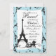 Illustration ludique de la tour Eiffel et de ses objets parisiens, dont un mignon caniche ! Amusez-vous pour une fête d'anniversaire, un mariage ou un baby shower !