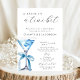 Une mariée dans un Tini Bit Martini nuptiale Invitation - Célébrez la mariée à être avec cet invitation de douche nuptiale à thème martini bleu. Doté d'un magnifique cocktail bleu avec un arc bleu coquette. Un mélange de script dainty et de police de bloc élégante. Customisez ce modèle d'invitation à la douche nuptiale éditable avec vos propres détails d'événement. Disponible en format numérique ainsi que sur commande d'impressions. Idéal pour un martini ou une douche à thème cocktail, un brunch à thème "A Tini Bit" ou un thème de la douche à martines bleues.