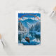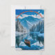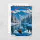 La carte présente une scène hivernale enchanteresse, où une rivière paisible serpente à travers un paysage enneigé orné de pins vertigineux, épaissis de blanc glacé. Dans l'arrière - plan, les majestueuses montagnes enneigées se dressent fièrement sous un ciel bleu clair et lumineux, dégageant un sentiment de sérénité. Un bateau en bois surplombe doucement l'eau calme et miroir, reflétant parfaitement le cadre idyllique. L'ambiance fantaisiste vous invitation à embrasser la magie de la saison.