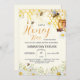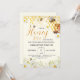 Elégante invitation baby shower aquarelle avec une abeille au miel dans de belles fleurs blanches et blanches. Parfait pour les parents amateurs de miel qui veulent un design de fête doux, féminin et unique.