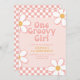 One Super Girl Retro a inspiré l'invitation de premier anniversaire avec des polices de style 70's et des marguerites et motif vérificateur.