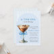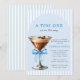 Un petit bout arrive - Célébrez l'arrivée imminente d'un petit paquet de joie avec notre invitation pour la baby shower couple "A Tini One Is on the Way". Ce design charmant présente un martini espresso, élégamment orné d'un délicat nœud bleu, donnant le ton pour une célébration moderne et fantaisiste. L'invitation présente également un fond à rayures côtières bleues tendance. Disponible avec ou sans fond. La calligraphie moderne et la typographie élégante donnent à l'invitation une touche sophistiquée et contemporaine, tandis que les teintes bleues douces créent une atmosphère parfaite et accueillante pour le bébé garçon qui va bientôt faire son entrée grandiose. C'est le mélange parfait de chaleur, de style et d'excitation pour marquer cette occasion spéciale !