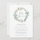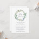 Cette belle invitation au baby shower, neutre pour les deux sexes, présente une couronne d'aquarelle douce et poussiéreuse avec des feuilles verts et des baies bleues douces. La typographie de script de style calligraphie est également présentée pour un look élégant.