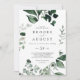 Cette verdure émeraude tout en un faire-part de mariage est parfaite pour un mariage boho. Le design élégant et rustique présente des feuilles d'aquarelle vert foncé moody et des eucalyptus aux tons bohèmes modernes. Enregistrez du papier en incluant les détails au verso du faire-part de mariage plutôt que sur une carte de boîtier séparée. Inclure également les informations RSVP si votre invité répondra par voie électronique (facultatif).