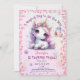 Invitation Unicorn 3e fête d'anniversaire fille rose pourpre