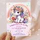 Invitation Unicorn 5e anniversaire fille rose floral arc-en-c